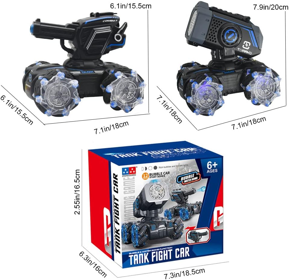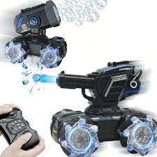 El Carro Tanque RC no es solo un vehículo a control remoto; ofrece una experiencia interactiva con doble funcionalidad: puede disparar bolas de hidrogel y generar burbujas para hacer las batallas más divertidas y visuales.